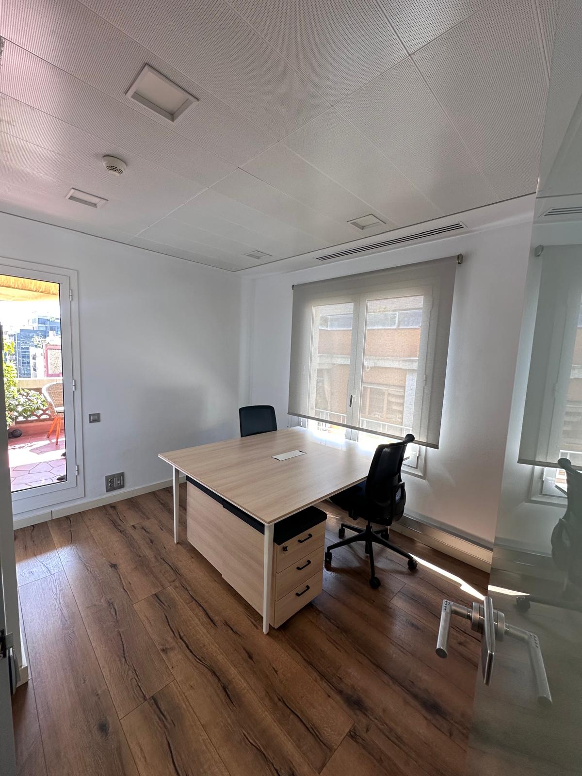 Despacho totalmente exterior, muy luminoso y con terraza privada orientada a la Calle Guadalajara. Situado en la planta 7ª del edificio. Ideal para dos personas o para un puesto incluyendo una mesa de reuniones.