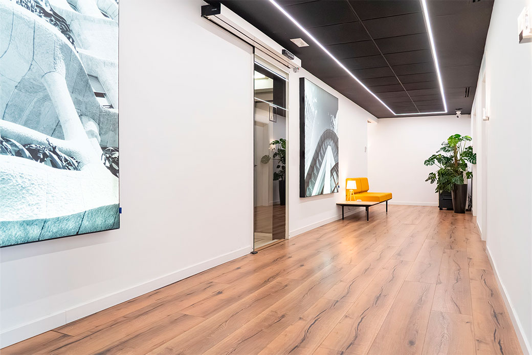 Un espacio elegante y versátil, con una zona principal de 6–7 puestos y un despacho interior para dos personas, perfecto como sala de reuniones o área de dirección. Completamente exterior y con amplios ventanales orientados a Via Augusta, ofrece una luminosidad excepcional y una presencia inmejorable.