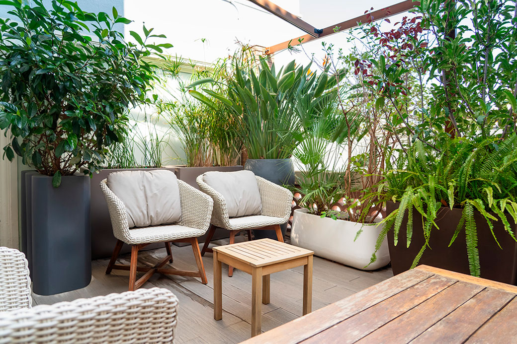 Acceso a la terraza y zonas de descanso.